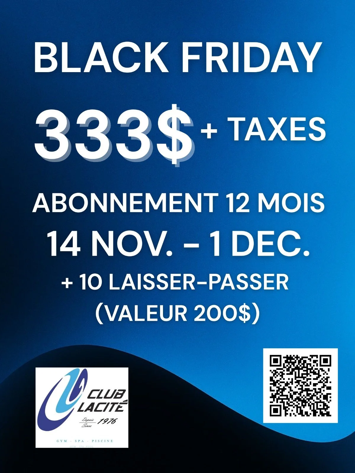 Le Club LaCité, c’est bien plus qu’un simple gym !Avec trois niveaux dédiés à la forme et au bien-être, nous vous proposons tout ce qu’il faut pour vous sentir au meilleur de vous-même, que ce soit pour améliorer votre condition physique ou pour vous détendre pleinement.Profitez d’une gamme complète d'équipements de cardio et de musculation de pointe, ainsi que de notre spa, de nos services de massothérapie et d'esthétique, conçus pour répondre à vos besoins de santé et de bien-être.Nos installations extérieures, ouvertes de mai à octobre, incluent une piscine, des terrains de tennis et un jardin, parfaits pour des moments de relaxation ou de sport en plein air.Déjà partenaire d’événements culturels et festifs d'envergure, le Club LaCité est également l’endroit idéal pour organiser vos événements privés ou d’entreprise. Contactez-nous pour en savoir plus !